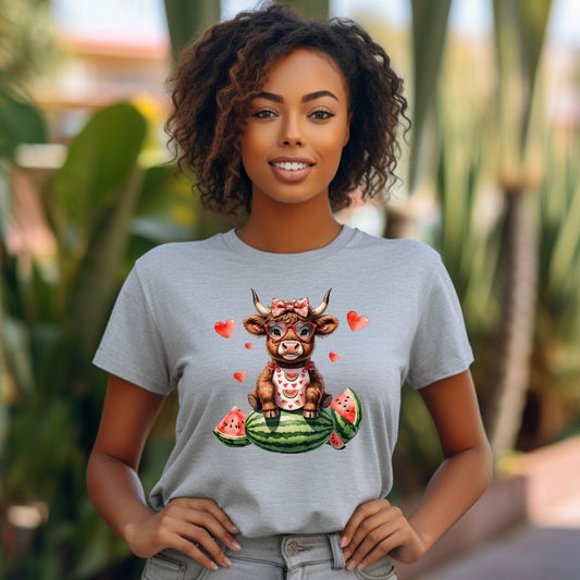 WATERMELON SUMMER COQUETTE HIGHLAND COW W/GLASSES